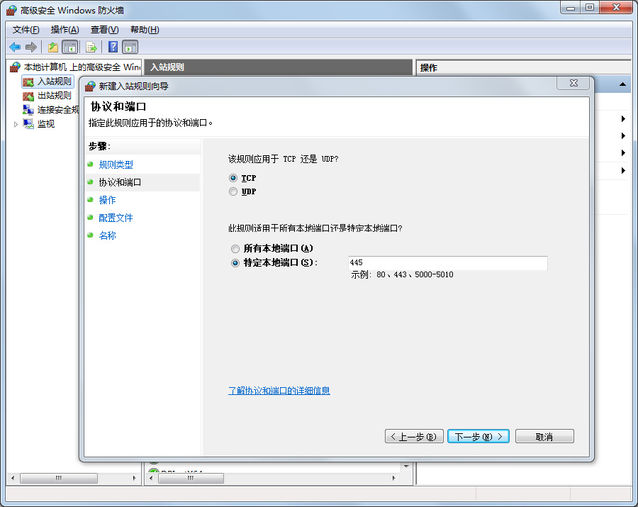 屏蔽Windows電腦445端口的方法:打開管理工具-高級安全 Windows 防火墻,添加入站規(guī)則→TCP協(xié)議、特定本地端口(輸入445)→阻止連接→完成。即可防止最新的勒索蠕蟲病毒。